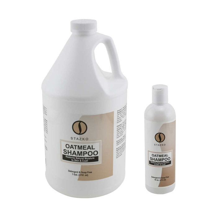 Stazkos hypoallergenic Oatmeal Shampoo provides relief from itching, scaling, and sensitive skin. These shampoos contain emollients to restore natural moisture to the skin and coat. Detergent and soap-free. This can be used as often as necessary and won't strip the coat. Green Apple Scent.